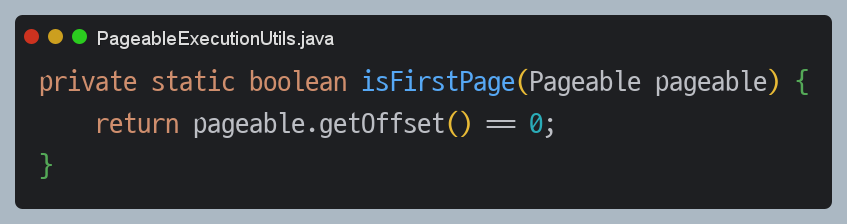 `isFirstPage`는 offset이 0인지, 즉 첫 페이지인지 확인하고 있습니다.